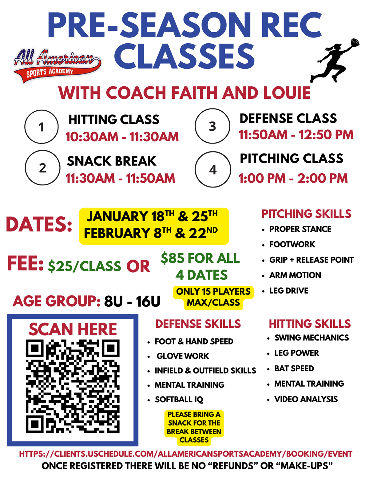 This click will give you the option to register for HITTING preseason rec classes. All dates available as single payments (choose your date)