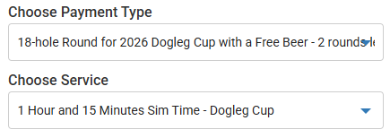 Upon signing up you will receive the ability to book two separate 1 hour and 15 minute time slots under 2026 Dogleg Cup using the "Series" option during the normal booking process, as shown below.