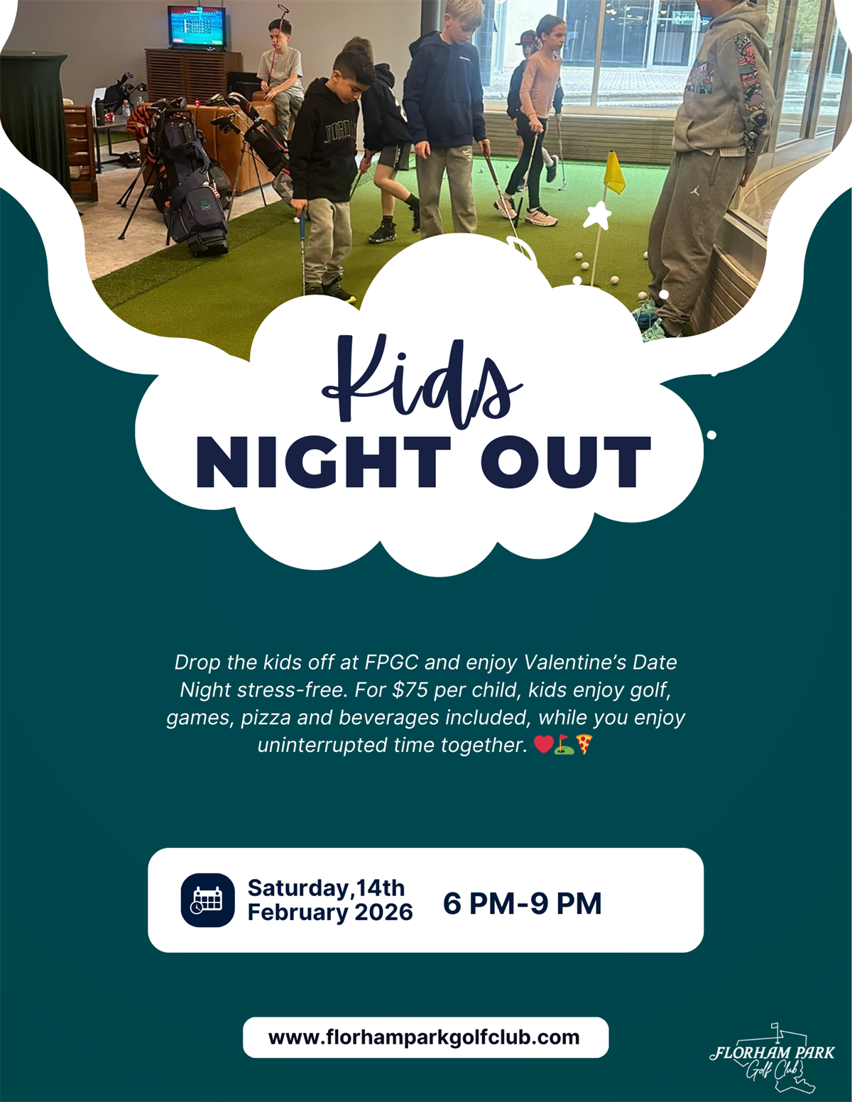 Drop the kids off at FPGC and enjoy Valentine’s Date Night stress-free. Kids enjoy golf, games, pizza and beverages included, while you enjoy uninterrupted time together