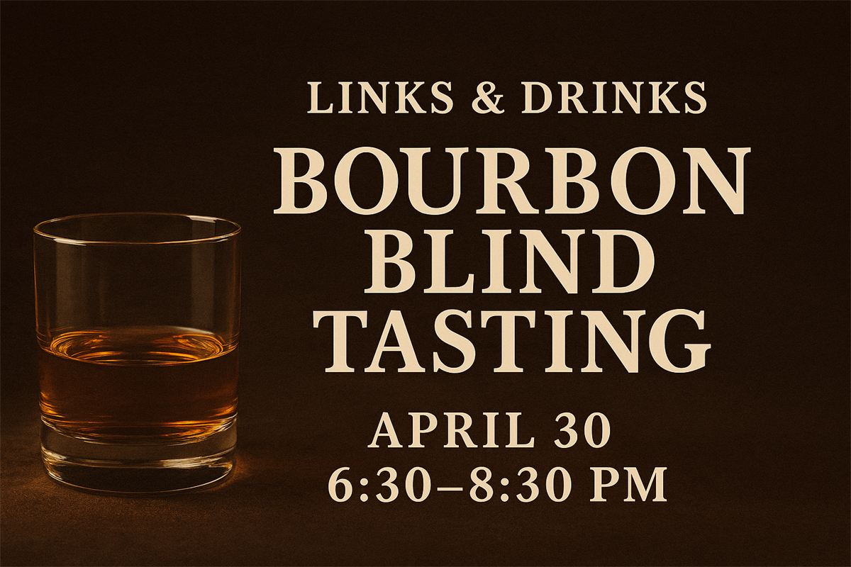 Join us at Links & Drinks for an exclusive Bourbon Blind Tasting experience on April 30th from 6:30–8:30 PM. This tasting is designed for bourbon enthusiasts who enjoy exploring flavor profiles without labels or preconceived expectations.