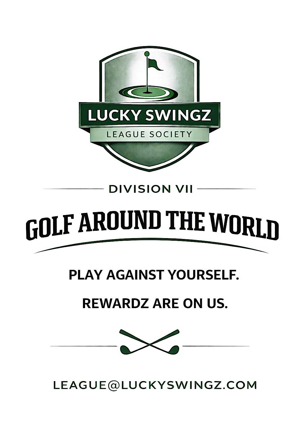 This League is for: ANYONE!!! It has no opponents, no schedule, and no deadlinez... just PRIZES -- for playing at YOUR OWN PACE! -------- ***REGISTRATION INCLUDES: (1) GOLF AROUND THE WORLD Sticker Collector's Book & (1) Lucky Swingz LEAGUE SOCIETY MEMBERSHIP = All Tee Times & Simulator Reservations that include an Official LEAGUE Round, you pay just $23/BAY/HR (SUMMER RATE -- WINTER = $34/HR)* | *Rates are subject to change based on availability & demand (but, we don't plan on it!)