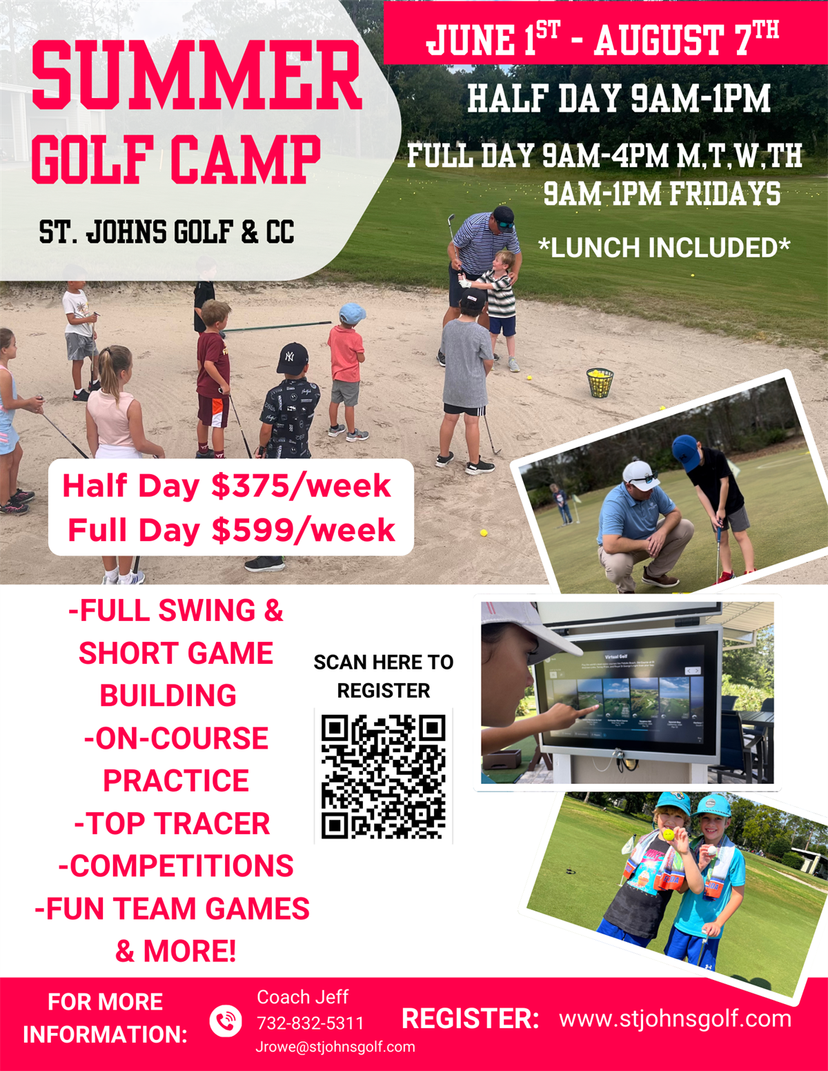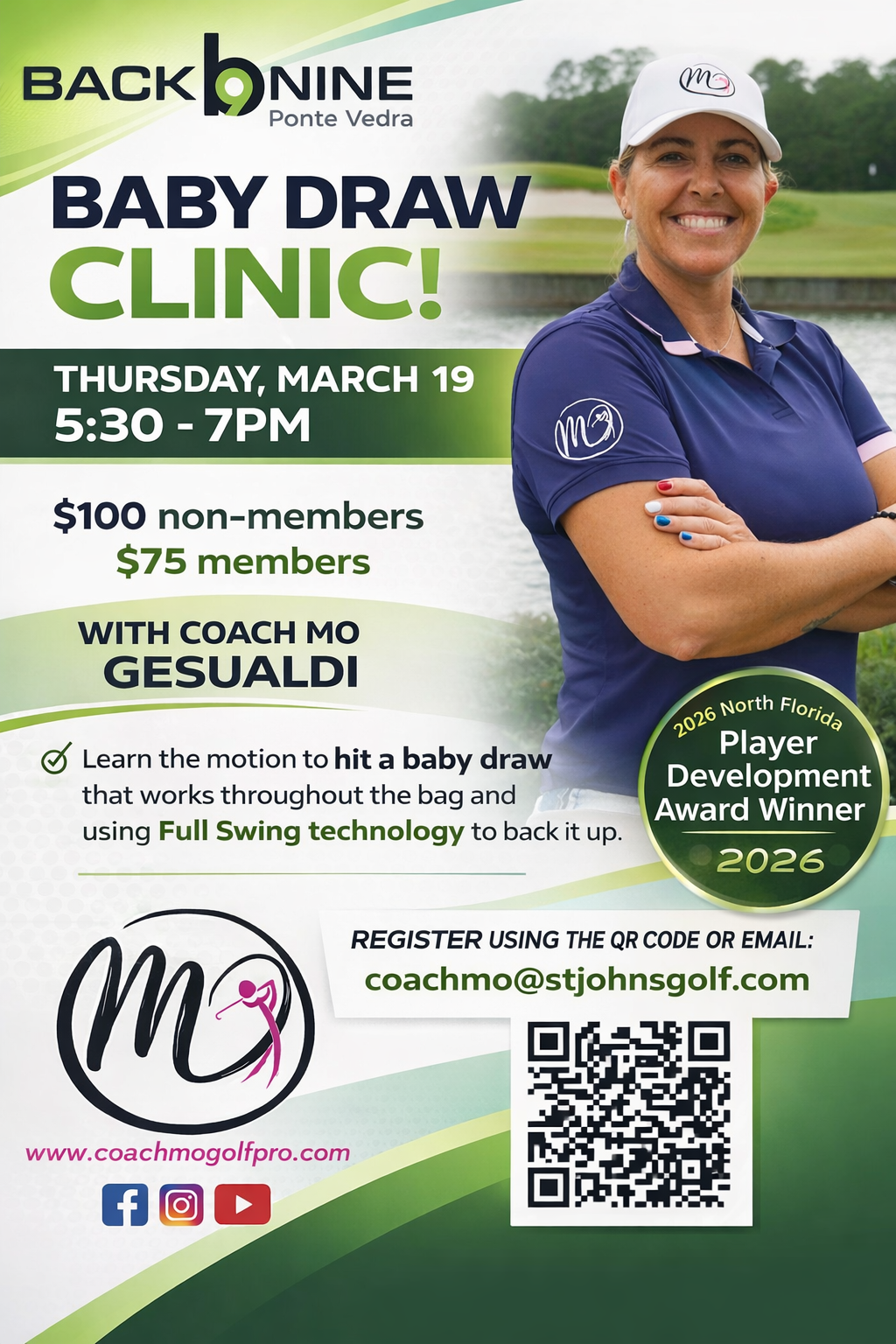 Access to coaching, workouts, TPI training, and afternoon on-course play and coaching 2x a week.