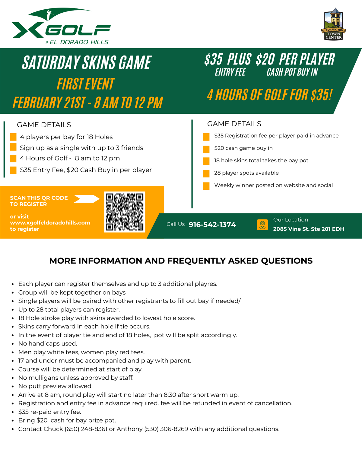 Fee includes golf, food and one adult drink ticket